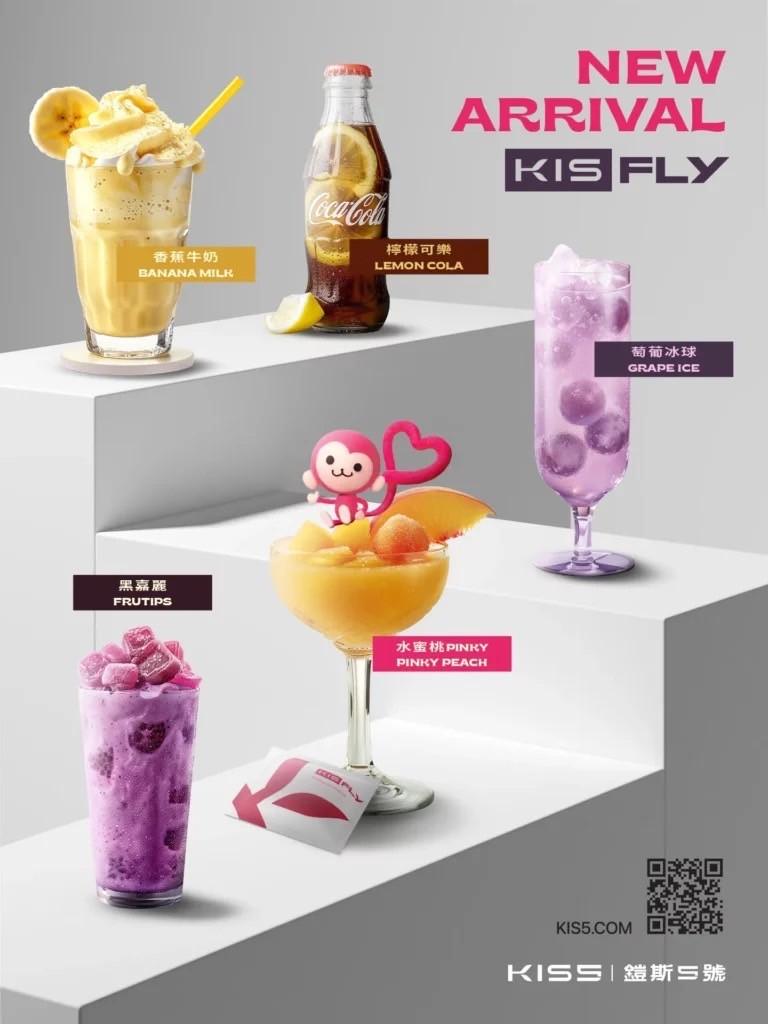 超薄荷, 冰河水, 龍井春茶, 冷泡冰茶, 霸王茶姬, 檸檬冰茶, 玫瑰花茶, 紅柚翡翠, 極限紅牛, 檸檬可樂, 莎士比亞, 蘇打冰沙, 水蜜桃, 西瓜泡泡糖, 日本甜橙, 香蕉牛奶, 黑佳麗, 葡萄冰球, 百香雙響砲, 藍心苺, 紅心芭樂, 芒果水蜜桃, 多多冰沙, 玫瑰牛奶, 冬瓜檸檬, 彩虹糖