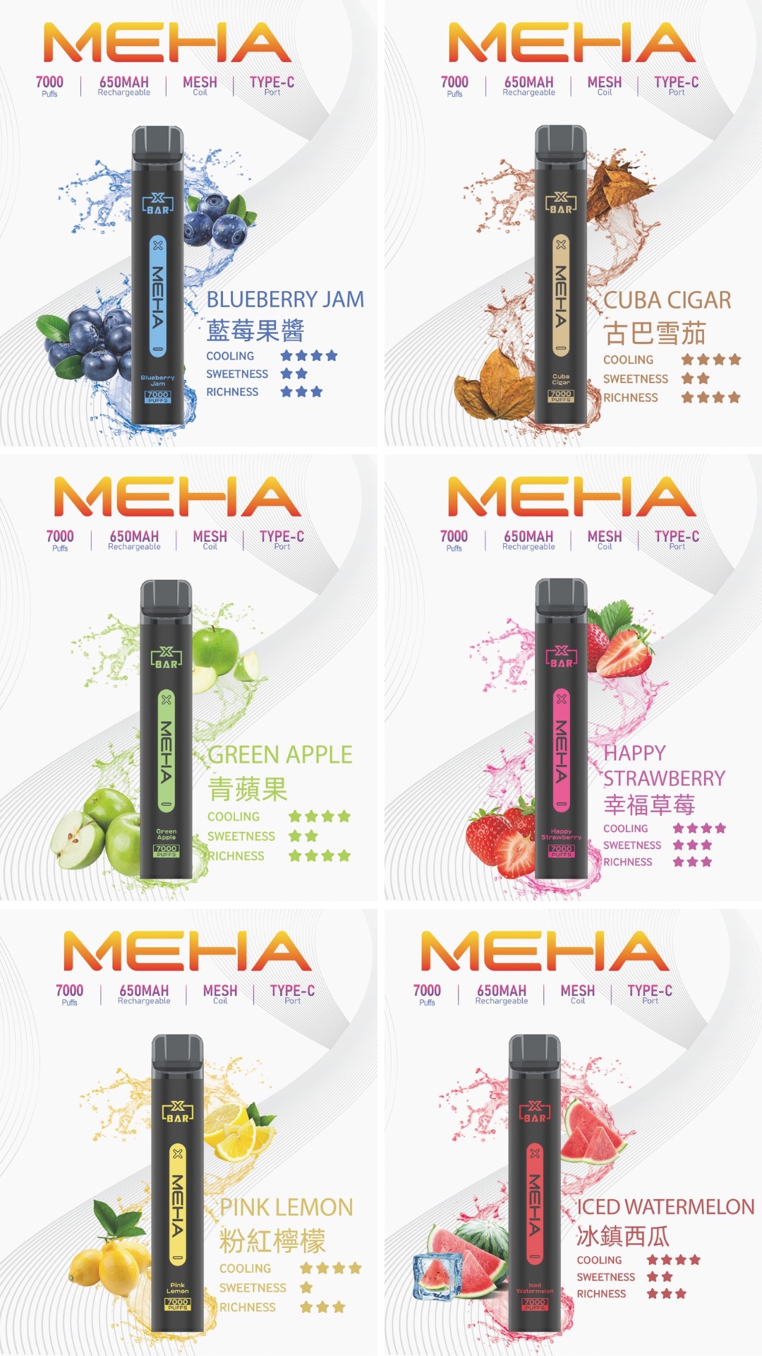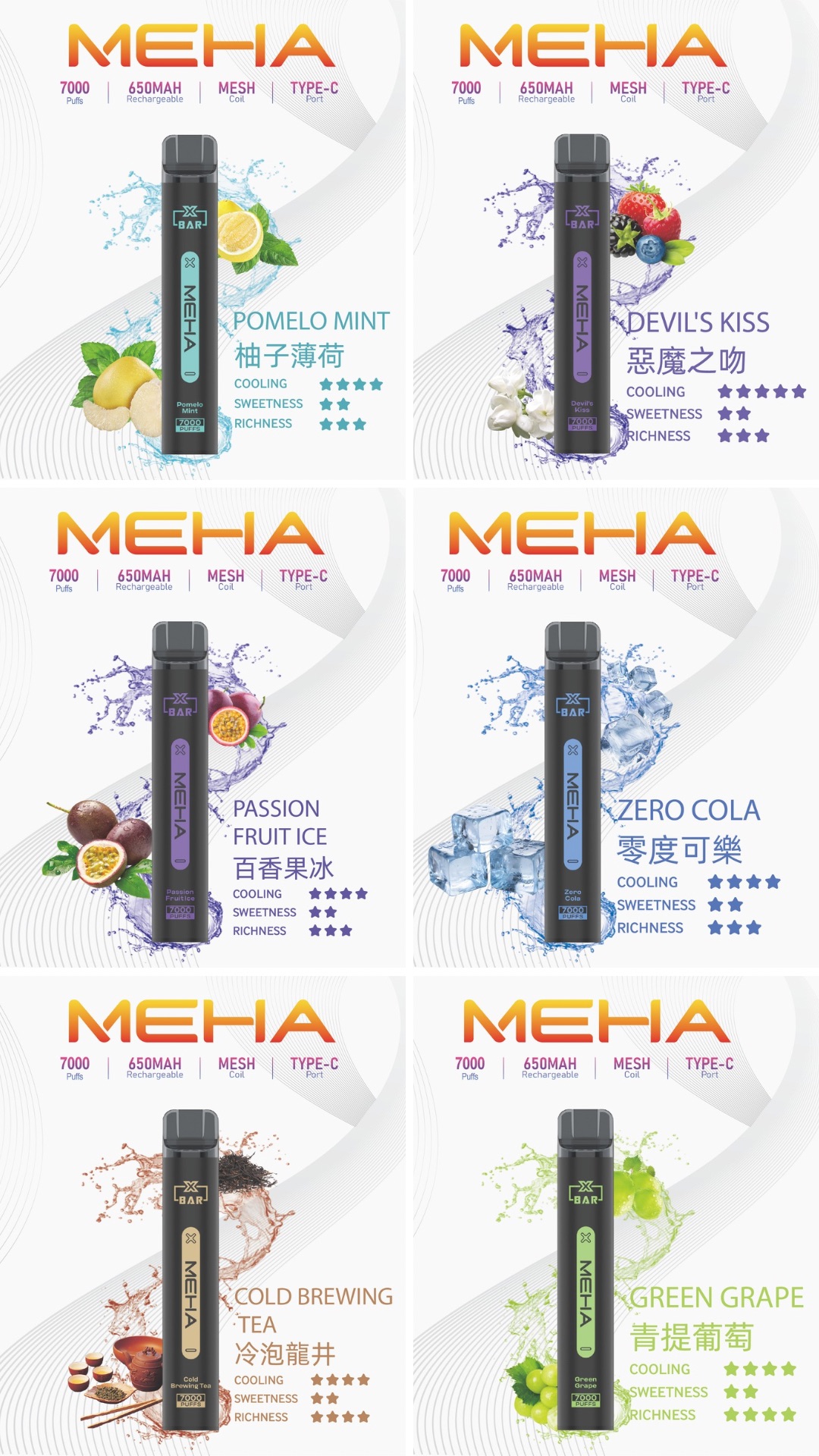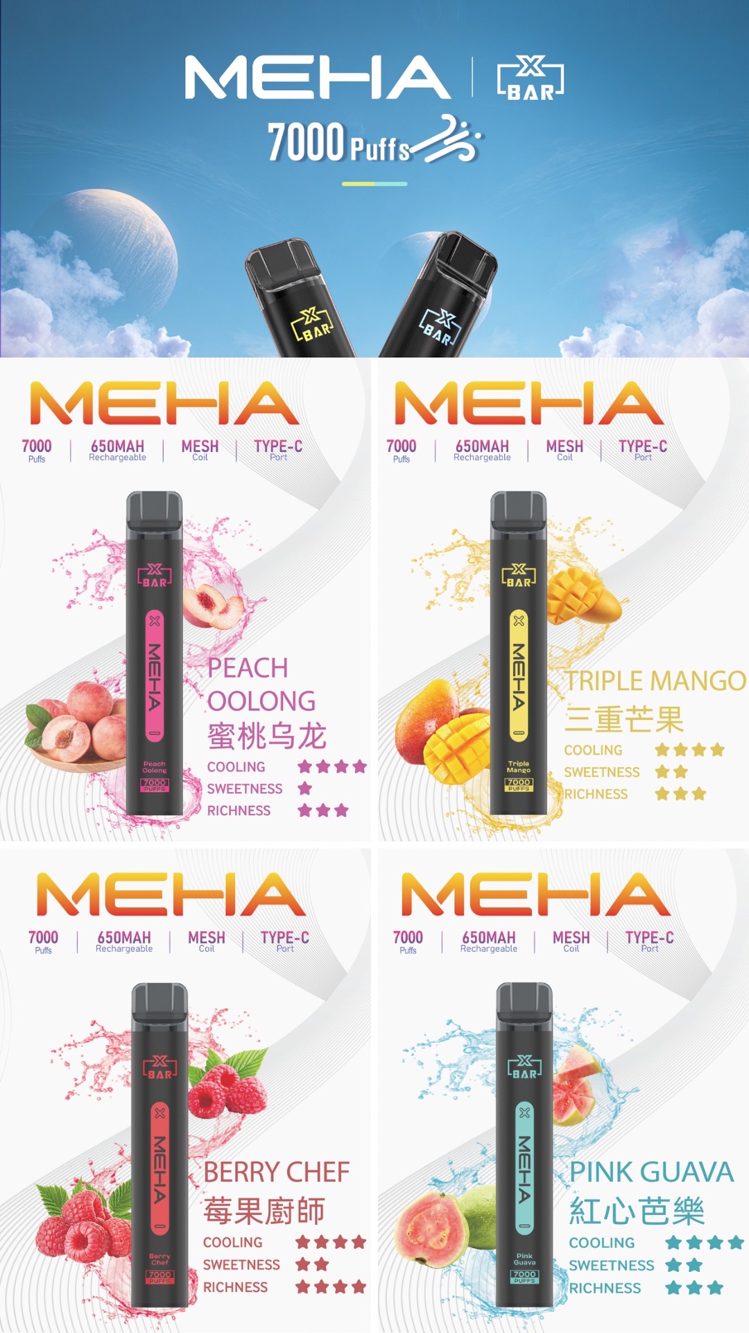MEHA XBAR小黑條 • 650mAh電池怪獸級續航 • 搭配Type-C接口,便攜出行 • MESH COIL霧化芯100%口感還原 • 7000Puffs 小身材,大能量 • 經典造型,底部狀態指示燈