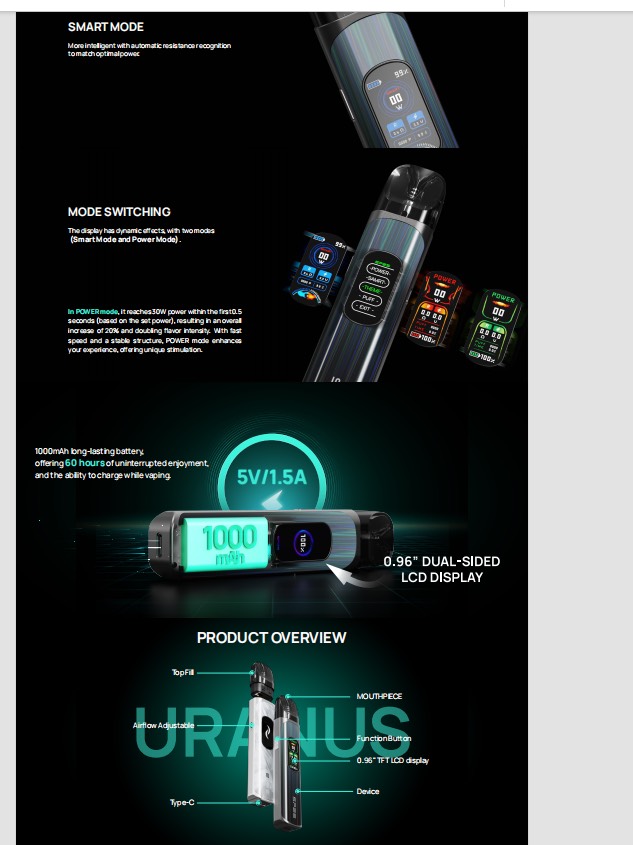 主機錆色, 主機銀白色, 主機藍銀色, 主機亮黑, 天王星專用空倉0.6Ω(一盒三顆), 天王星專用空倉0.8Ω(一盒三顆)